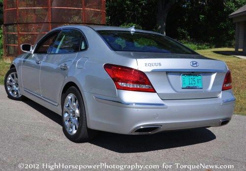 Advertising Advertising The back end of the 2012 Hyundai Equus Signature, showing the sole Hyundai badge and the integrated dual exhaust tips. News Categories Gallery Carmakers Hyundai Advertising Advertising