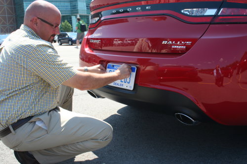 Advertising Advertising Mike Gruenberg, Sales Manager of Martin Chrysler Dodge Jeep, Alma, Michigan plates the 2013 Dodge Dart headed to Alma. News Categories Gallery Carmakers Chrysler Dodge Advertising Advertising