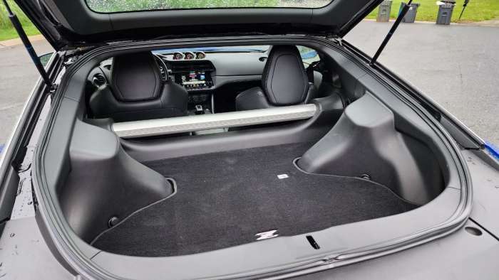 In addition to automated emergency braking, the Z also comes with standard lane-departure warning and adaptive cruise control. Lane-departure warning alerts the driver when the car drifts out of its lane, while adaptive cruise control can adjust the car's speed to maintain a safe distance from the vehicle in front.