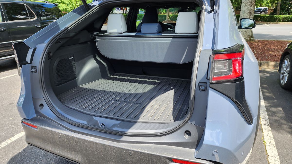 With the rear seats folded flat, the Solterra offers up to 30 cubic feet of cargo space, making it a capable travel companion for your gear. As you can see the spacious cabin already suggests that there is ample legroom and headroom in the second row and headroom for up to four adults.