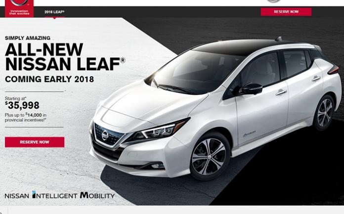 According to the reservation page the starting price of the 2018 Nissan Leaf is $35,998 dollars (I assume Canadian because on the picture a U.S. model is shown). It also offers $14,000 in provincial incentives. For example, in British Columbia, the $5K incentive will bring the base price down to $31K.