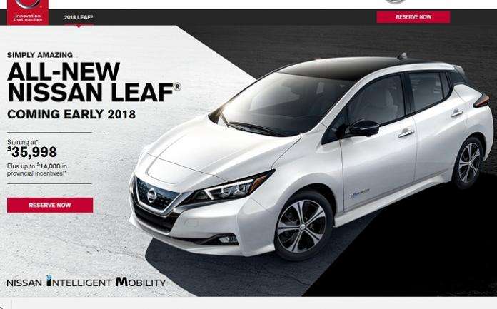 Now you can explore the all-new 2018 Nissan Leaf featuring Nissan Pro-Pilot and reserve your model today, reads the website of Nissan Canada. I didn't see the U.S. reservations page open yet, but looks like Canadian EV enthusiasts can now reserve their 2018 Leafs without making a deposit unlike Tesla Model 3 reservations.