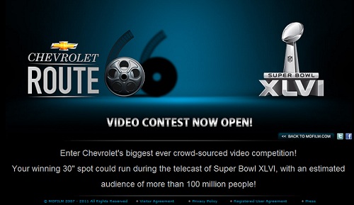 Super Bowl ads are very popular among consumers. They are fun to watch, expensive and attract top headlines. This is why Chevy is going unique this time and invite the interested parties to company's biggest ever crowd-sourced video competition. "Your winning 30" spot could run during the telecast of Super Bowl XLVI, with an estimated audience of more than 100 million people," reads the message on the company's website.