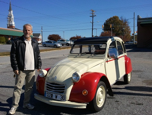 Image: John Cheek with this Citroen 2CV in Hickory, NC