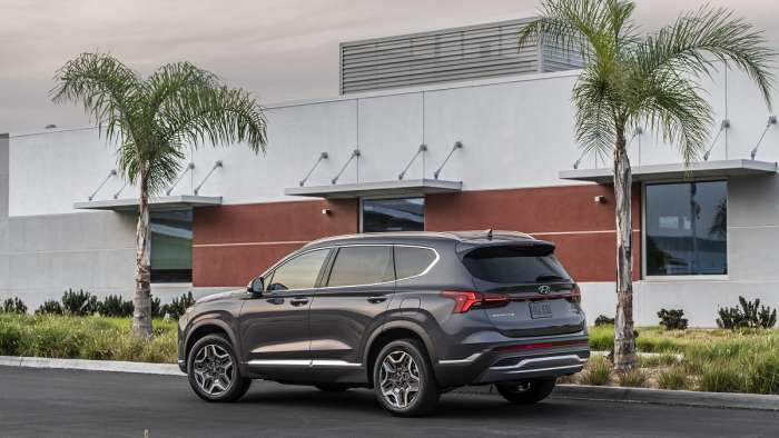 The 2021 Hyundai Santa Fe is a five-passenger SUV available in four trim levels: SE, SEL, Limited and Calligraphy. On the SE, SEL and Limited trim, front-wheel drive is standard and all-wheel drive is optional. The Calligraphy comes standard with all-wheel drive. The Calligraphy trim itself has two variants. The upper variant, the Calligraphy 2.5T AWD-19" Wheel builds upon the Santa Fe Limited model with the more powerful 2.5-liter turbocharged engine.