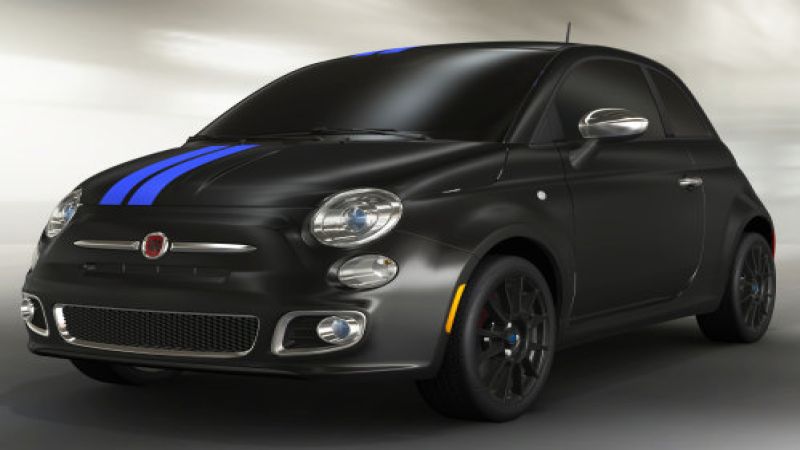 The Moparized 2012 Fiat 500 is heavily clad in Mopar branded accessories inside, outside and under the hood – showing how much you can personalize the new Fiat 500 with items available in your local Chrysler Group dealership. The exterior upgrades include items like the Mopar custom wheels, a set of vinyl stripes, a snowboard carrier (that doesn’t seem to be included in the rendering) and a handful of chrome trim items. Inside, Mopar adds a Katzkin leather dress-up package matching the black and blue exterior, carbon fiber trim pieces and 500-branded door sill guards. Finally, to improve the performance of the sporty 2012 Fiat 500, Mopar includes a strut tower brace.