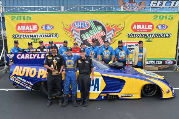 Don Schumacher Racing came into last weekend’s Gatornationals in Gainesville, Florida with the hopes of making it 3 in a row to start the 2015 NHRA season. Matt Hagan won each of the first two races while teammate Ron Capps looked strong in both events as well. Joining Capps and Hagan in a 2015 Dodge Charger funny car were Jack Beckman, Blake Alexander, Tommy Johnson Jr and John Hale for a total of six Dodge entries in the 17 car field.