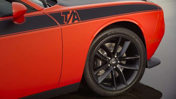 The new Challenger GT in rear-drive form gets a new 20-inch wheel in Satin Carbon, but if you opt for the Plus Group, you get a different, new set of 20-inch wheels in Satin Carbon. Also, if you add the Performance Handling Group to your new Challenger GT rear-wheel-drive model, the new “Lights Out” wheels are standard, shown below on the Challenger T/A.