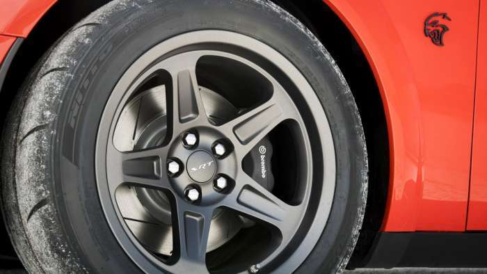 We would guess that the smaller front brakes cost slightly less than the normal Hellcat brakes, so the brake change probably won’t increase the Super Stock’s MSRP.
