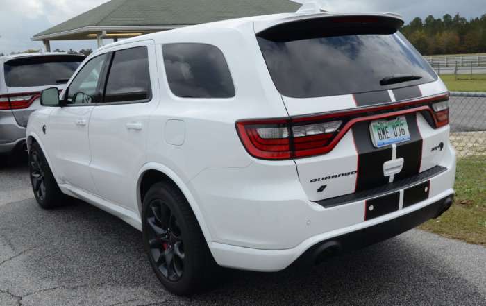 The 392-powered Durango has loads of power, pulling hard out of the corners and braking nicely on the wet track. The Pirelli tires gripped the wet pavement surprisingly well on acceleration, braking and cornering while the suspension system set to Track Mode kept the big SUV nice and flat under harder cornering.