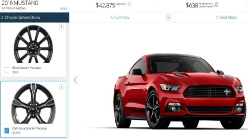 Finally, for $1,195, you can get the 6-speed automatic transmission in your 2016 Mustang GT California Special rather than the 6-speed manual, but I would strongly recommend the models with the third pedal.