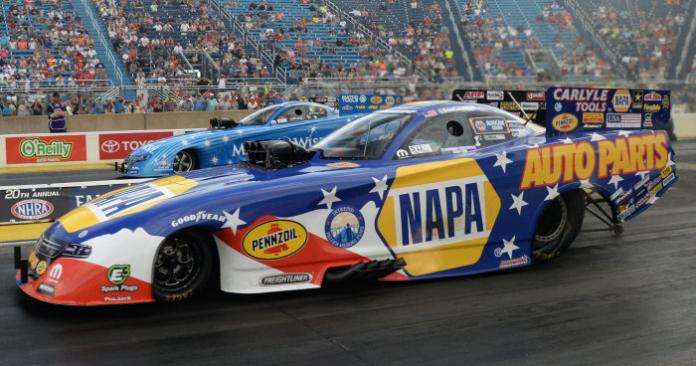 In a clash of the championship frontrunners, Ron Capps beat Matt Hagan in a tight race while Tommy Johnson Jr cruised to victory against Tim Wilkerson – setting up the 7th funny car final round of 2017 with 2 DSR Chargers battling for the win.