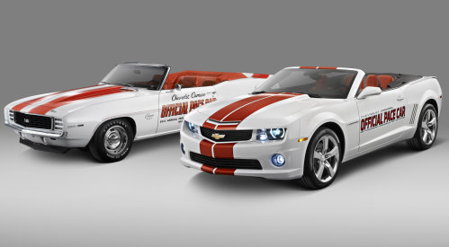 The first Chevrolet Camaro pace car was used in 1967 when the Camaro was first introduced and it was back again in 1969 in the form of a white and orange convertible. The 2011 Chevrolet Camaro SS Convertible pace car derives its styling from that 1969 Camaro pace car with white paint clad in orange stripes and trim, finished with orange interior surfaces.
