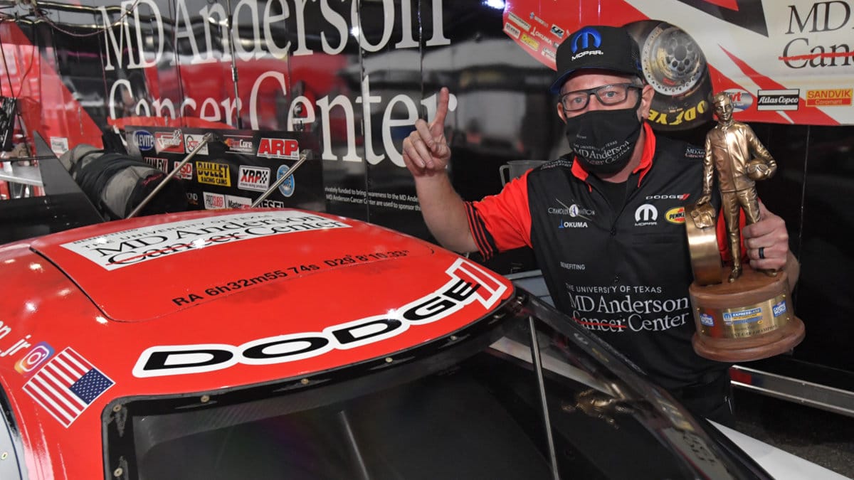 Don Schumacher Racing came into the Mopar Express Lane NHRA SpringNationals in Houston with all four of their Dodge Charger SRT Hellcat funny car drivers in contention for the 2020 championship. Coming into the SpringNationals, a DSR Charger funny car had won the last 12 races, dating back to the end of the 2019 season. As a result, Matt Hagan, Jack Beckman, Tommy Johnson Jr. and Ron Capps all had a shot at the title with two races left.