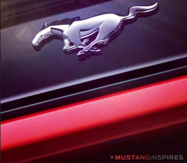 In regards to the front end, the running pony logo has generally been mounted on the mesh of the grille but there seems to be no mesh grille anywhere in sight. There is the possibility that the 2015 Mustang will have some solid bars running across the nose and this could be a tightly cropped shot of that new design but I am doubtful of that. The rear end of the current Mustang has the running pony logo on a gloss black field but it is in a large circle much like previous models that have had this logo on the back end. Much like the front end, the 2015 Mustang could have a slightly new design with the running pony logo mounted on the face of the trunk lid the red trim below could be the rear fascia while the black above the logo could be the inside of the trunk. This seems more likely than the front end discussion but it still seems unlikely that the pony would be running outside of the safe confines of that large circle that is featured on the current models. Finally, the interior (not the door sill) seems like it could be the most likely place to feature a layout as shown in the image above. This could be the passenger side of the dash face with red trim along the bottom matching the exterior or interior colors chosen with the black portion above could be the underside of the dash cap.