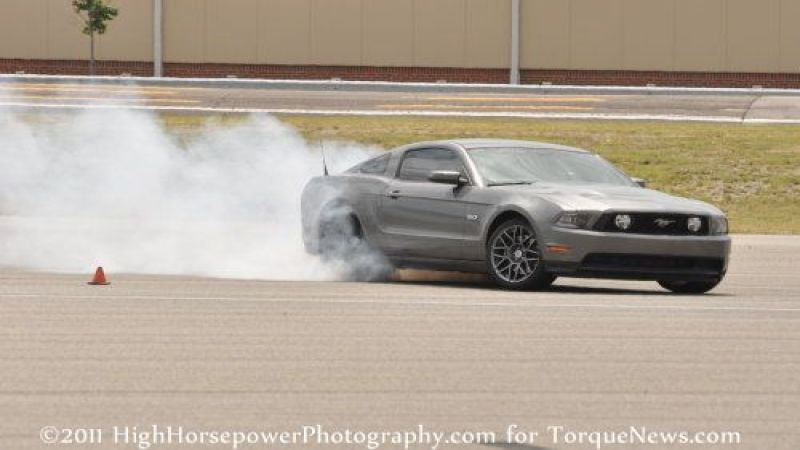 To help give the members of the media a better idea of what drivers like Vaughn Gittin Jr and Brian Deegan do behind the wheel, Ford had a massive tarmac area setup for Gittin Jr to take us out and give us a taste of the drifting world in a 2011 Ford Mustang GT. After spending time in the car with Vaughn, we moved over to another course where Brian Deegan tore around a road course, drifting and jumping in a 2011 Ford SVT Raptor F150. The image above and the gallery below offer a few shots of Gittin tearing up the pavement (and the tires) in both a Mustang GT (dark grey) and the new V6 Mustang (silver).