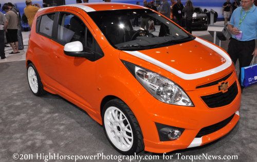 General Motors could also be the first single brand to offer a vehicle in all five major car segments once the Chevy Spark hits our roads – opening the door for more A segment subcompacts/minicars from Ford, Chrysler and import competitors. The Spark made its global debut at the 2009 Geneva Motor Show but it has made its rounds through the US – including a stop at the 2010 SEMA Show in Las Vegas, helping GM to show off their flashy new Z Spec accessories line (shown on the Spark on the right).