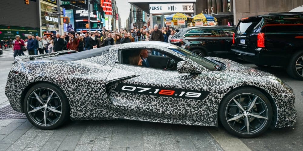 Yesterday afternoon, General Motors CEO Mary Barra arrived at the Footsteps to the Future Gala in New York in a camouflaged sports car driven by Chevrolet Corvette Chief Engineer Tadge Juechter. That mysterious sports car is the same test car that photographers have been capturing for years, speculating that it is a mid-engine Corvette, but at this point, there is no question.