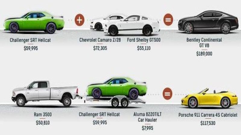 You could spend $117,530 on the Porsche 911 Carrera 4S Cabrio or you could buy a Ram 3500, an Aluma car trailer and the Hellcat Challenger for $118,800.