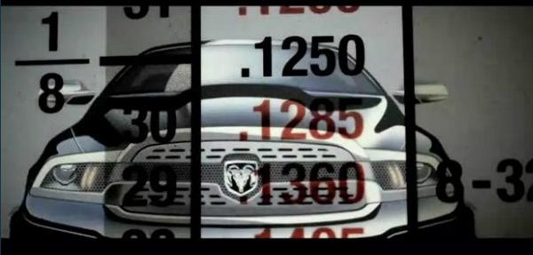 That short video (which is included below) is your typical automaker commercial with the deep voice guy bragging about why the Ram 1500 is awesome with the emphasis being the fact that the half ton Ram has won the Motor Trend Truck of the Year award two years in a row. To many people this commercial may have been ignored as just another truck commercial but at the 3 second and 20 second mark of this commercial we get a look at a curious vehicle that appears to be some sort of Ram concept. A still from the 3 second mark is posted above and as you can see, this appears to be some sort of futuristic Ram brand vehicle from the front and while the Ram brand has been known for cutting edge exterior designs – this appears to be a touch too far into the future for my tastes.