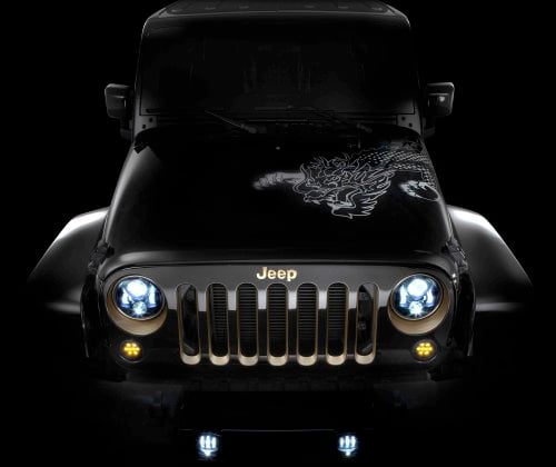 This interesting piece of news surrounding the Jeep Wrangler Dragon Package comes from the Mopar super geniuses at Allpar.com. According to Allpar, the Dragon Package entered production recently and shipments to dealerships around the country have already begun. This comes as a bit of a surprise considering that there hasn’t been any announcement made by the Chrysler Group or the Jeep brand but after thinking that the Dragon Concept would be a China-only affair – it made an appearance earlier this year at the 2013 Detroit Auto Show and got me wondering if it might be more than just a Dragon-themed concept vehicle. After all, it is really just a run of the mill Wrangler Unlimited in black with a bunch of dress-up goodies inside and out so it isn’t a package that requires much effort from the company to put it into production. Also, with a price of $4,500 – this is an expensive appearance package that should really help pad the bottom line on those vehicles equipped with the black and gold look.