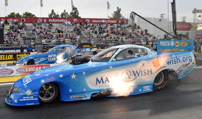 Things looked good early on for Ron Capps and Don Schumacher Racing, with his Charger sitting 6th on the ladder while Robert Hight and his Camaro were in the 15th spot. In fact, all four of the DSR Dodge Charger funny cars were in the top half of the qualifying order, so the Mopar race cars looked strong headed into the elimination rounds.