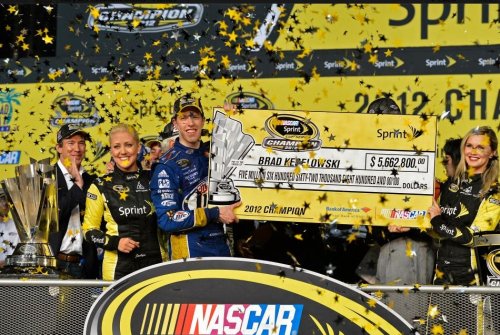 For Brad Keselowski, this is his first NASCAR championship in just his third full year on the circuit. Keselowski tied with Johnson and Denny Hamlin for the most wins with 5 a piece although BK won his five races without sitting on the pole position at all in the past year. Along with the big trophy and the title, the 28 year old Keselowski took home a very big check for $5,662,800.