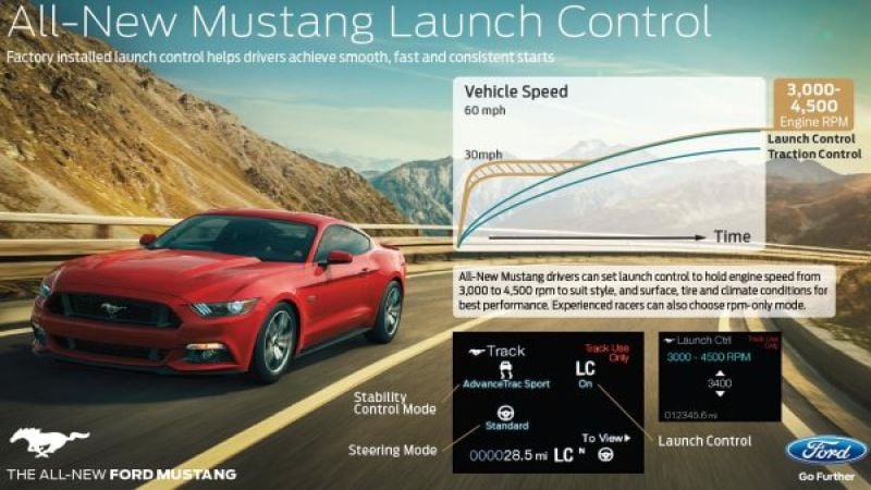 This is only standard on the 2015 Ford Mustang GT, but I would expect that any performance package for the EcoBoost and maybe even the base V6 Mustangs. This may have an especially strong impact on the EcoBoost Mustangs, as the launch control system could allow the driver an easier time of spooling up the turbo prior to launching. Then again, with the EcoBoost Mustang being billed as an economy package, Ford may opt to keep the Launch Control system unique to the Mustang GT…and the future higher end Mustangs.