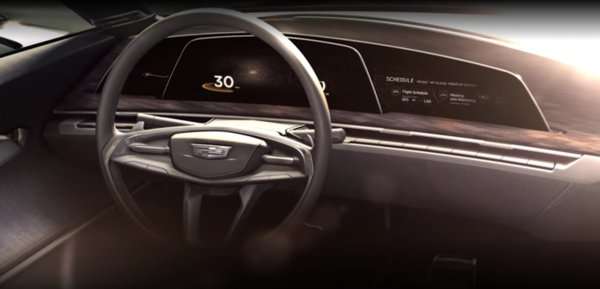 If you watch the Cadillac teaser video below, we get a few tightly cropped images from the cabin of this mystery car and the highlight of the clip is the massive, high tech dashboard. It appears as though the entire infotainment system and the driver information center is incorporated into a set of overlapping screens, with a spread of buttons next to the steering wheel likely working with the controls on the steering wheel to adjust every aspect of the vehicle.