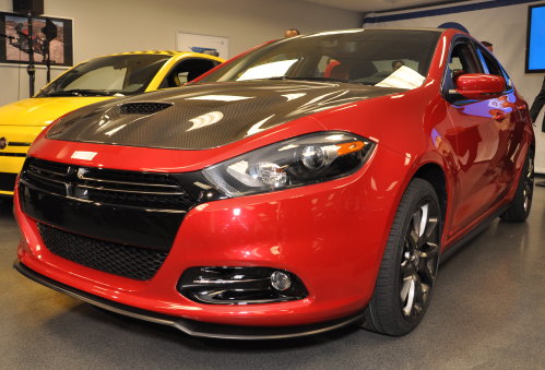 The Mopar aftermarket division plans to offer more than 150 accessories for the new compact Dodge Dart sedan but with the Dart GTS 210 Tribute, Mopar has put together a two-stage package that enhances the looks and the performance of the new Dodge Dart. The GTS 210 Tribute package was introduced equipped with both Stage 1 and Stage 2, with Stage 1 being the appearance upgrades while Stage 2 tacks on the performance and power.
