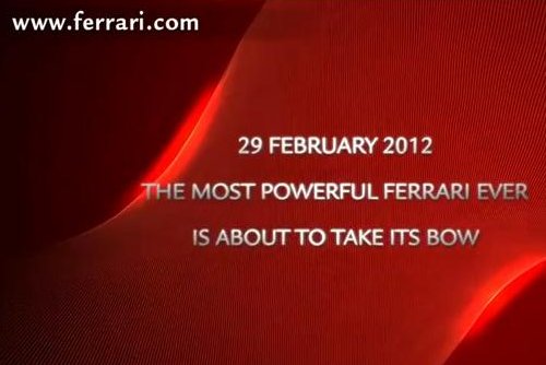 The video released yesterday via Ferrari’s YouTube account begins very boldly, proclaiming that on February 29th 2012, “the most powerful Ferrari ever is about to take its bow”. The video then takes us to Pista di Fiorano race course where a garage door rolls open and out screams a masked supercar – presumably the new Ferrari F620 GT. The next 13 seconds after the masked test car pulls out of the garage is packed full of moving shots of the mystery car in action – giving us a great chance to hear the new 7.3L V12 screaming its way around the race track. The video finishes by proclaiming that ‘a new era of extreme V12 cars dawns’ on February 29th 2012.