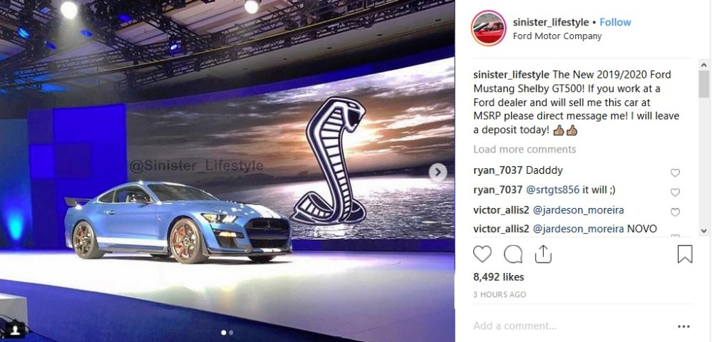 Three hours ago, the image above showing what looks to be the 2019 or 2020 Ford Shelby GT500 Mustang popped up on the Instagram account of Sinister_Lifestyle. There is no other information on the car in the post, so we don’t know how this Instagrammer got ahold of this image, but we imagine that the folks at Ford aren’t too happy about it.
