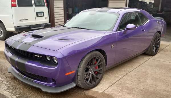 Of course, shortly after that, the Hellcat Challenger was introduced and the Wehmeyer men discussed owning one in the future, but when the 2016 models debuted in Plum Crazy – Justin’s interest grew. Tim wanted to wait, but after seeing the Plum Crazy Hellcat Challenger with the Carbon Fiber stripes, they were sold. Justin wanted a new muscle car and Tim was without a muscle car after selling his Chevelle, so the two went in together on this wicked Plum Crazy Mopar muscle car.