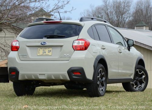 Along the sides, the 2013 XV Crosstrek really stands apart from the Impreza thanks to the increased ride height that has the body sitting some 4 inches higher. That difference provides a much bigger gap between the tires and the body and that basic design gives the XV the natural look of a crossover or small SUV. Also, the XV has unique 17 inch wheels with black painted pockets and machined spokes that are far sportier than the standard rollers on the Impreza. Also, in addition to the black cladding along the lower rocker areas, the XV has dark contrasting wheel opening flares that help to contribute to the offroad ready look of this high riding sport wagon.