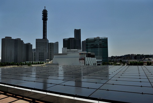 Nissan installed 488 solar panels at its global headquarters in Yokohama, Japan to collect the sun’s power and feed it into a battery that is the equivalent to four Nissan LEAF batteries at each of seven charging stations on Nissan’s grounds. Testing the system began today (July 11).