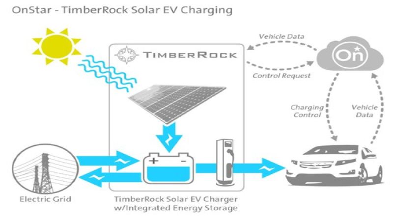 Electric cars are often pictured in front of wind turbines or solar panels, because we want clean fuel for our clean cars. GM's OnStar division just announced a partnership with TimberRock that could make this more of a reality, directly tying solar panels, grid energy storage systems, and electric car charging.