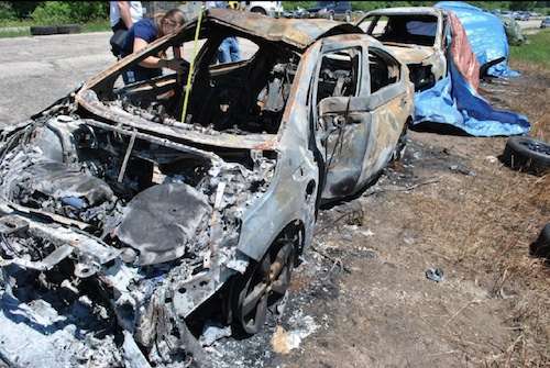 Are electric cars as safe as gasoline cars? This question was primarily fielded by John German who explained relative statistics of car fires in gasoline and electric cars, as well as the safety characteristics of lithium batteries we just discussed. The statistics say that over the last several years there have been 287,000 gasoline car fires per year, with 487 deaths, and extensive property damage. That's a rate of one fire per year per 1000 gasoline vehicles. Why? Gasoline is a flammable liquid that's explosive in certain circumstances. If the rate of gasoline car fires were also true for electric cars there would have been 17-18 electric car fires during 2011. Instead there have been no electric car fires, hence EV's are safer than gasoline powered cars. John German characterized one fire in the crash tested Chevy Volt as an isolated incident.