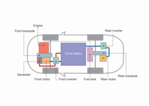 The Outlander PHEV includes a Twin Motor 4WD system, comprising a front- and rear- electric motor to drive the front- and rear- wheels. This system offers decreased friction loss, better response and finer control than conventional mechanical systems. The Twin Motor 4WD system is integrated with Mitsubishi's S-AWC (Super All Wheel Control) integrated vehicle dynamics control system, delivering extra stability and all-terrain performance. Additionally the electric motors create an excellent off-the-line acceleration experience.