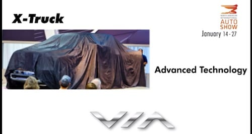 Next week at the North American International Auto Show (NAIAS), Via Motors will be announcing the next models in the company's plug-in hybrid electric truck model line. The company, backed by Bob Lutz (former vice-chairman of GM), makes a line of plug-in hybrid trucks targeted at commercial fleet owners, and built on GM Trucks. On Wednesday, the company posted a teaser video on YouTube showing Bob Lutz previewing the two vehicles they'll show at the NAIAS.