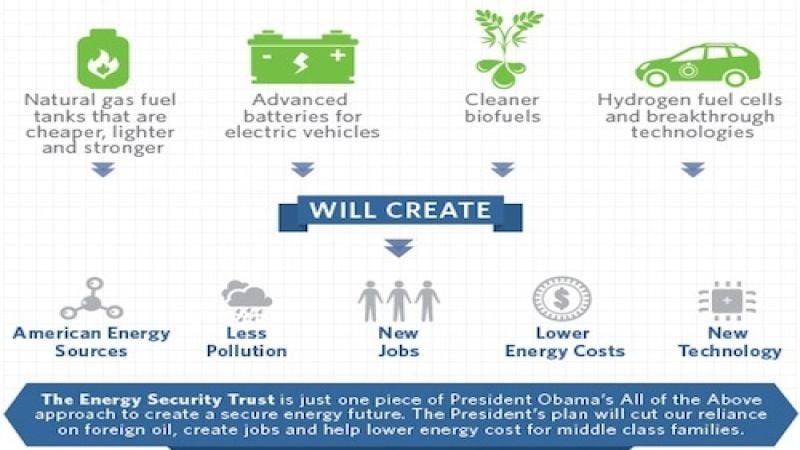 According to a White House blog post, the goal is to shift America’s cars and trucks off oil entirely. The Energy Security trust does this, according to the Administration, by invest in "research that will make future technologies cheaper and better." As the Administration notes, U.S. fossil oil imports have fallen the last few years, and this has had a positive impact on national energy security even though the U.S. is still extremely dependent on foreign fossil oil.