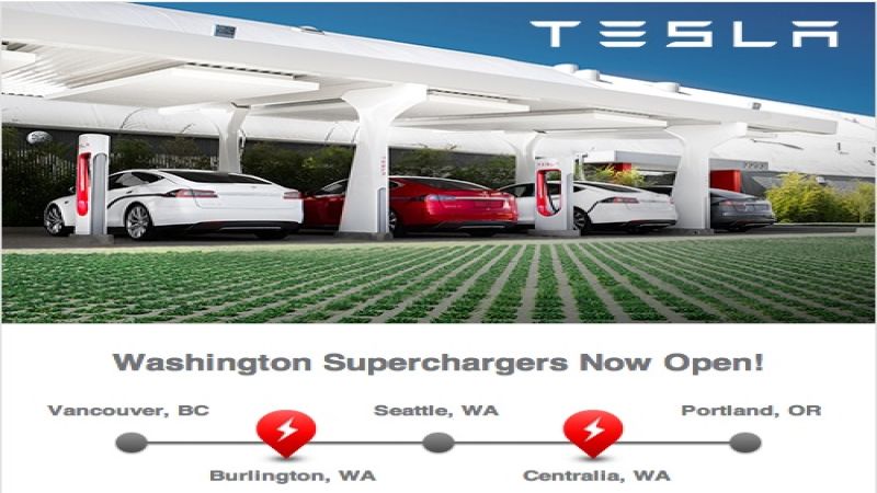 Tesla Motors today expanded the Supercharger network into the corridor between Vancouver, BC, Seattle, WA, and Portland OR. The move begins to form the West Coast skeleton of the network, that allows Tesla Model S owners to drive for free, with as much freedom to take road trips as gasoline car owners have.