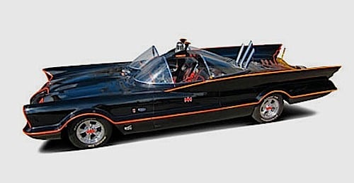“Holy Batmobile, Batman, someone paid $4,260,000 for our car!” Robin could have told Batman. In 1955, the Lincoln division of Ford Motor Company designed a concept car called the Lincoln Futura. This The 19-foot long, two-seat, bubble-topped grand touring car prototype was built by hand in Turin, Italy for the lump sum of $250,000. If the car never made it to production, somewhere in the mid 1960s George Barris of Barris Kustom City acquired the car for $1 directly from Ford. With 15 days to design the Batmobile and a small $15,000 budget, Barris transformed it. The car later became an icon eternally etched in the minds of TV viewers with the 1965 Batman TV series.