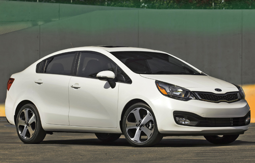 There are three trims levels for the 2012 Kia Rio sedan with gradual price increases up to the top-of-the-line Rio sedan SX that starts at $17,500 and includes lots of amenities including standard metal pedals, LED front accents lights and taillights, leather-wrapped steering wheel and shift knob, power-folding outside mirrors, dual illuminated vanity mirrors, and UVO powered by Microsoft 5 voice-activated infotainment system with rear camera display.