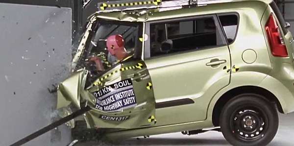 Photo: 2013 Kia Soul undergoing IIHS crash testing.