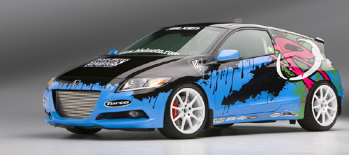 Sharp-eyed attendees at SEMA this year in Las Vegas may have spotted a CR-Z hybrid with a turbo engine, but a little different than what Honda has envisioned. Bisimoto Engineering tricked out a CR-Z with a Bisimoto built 1.5L LEA1 engine, Bisimoto valvetrain, rods, turbo kit, intake gasket, and level 2.4 camshaft. It claimed to put down a combined 533 horsepower. Now that’s a hybrid we’d be glad to drive.
