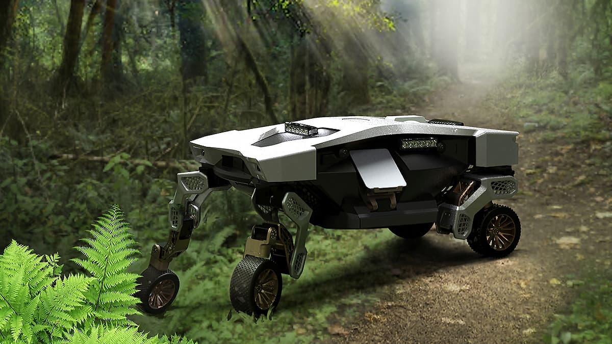 The ground excursion robot is designed to carry various types of payload while traveling over challenging terrain. A large load bay housed within its body means TIGER can carry goods for delivery. Leg-wheel articulation enables TIGER to tackle a range of extreme situations while keeping payloads more level than a typical ground vehicle.