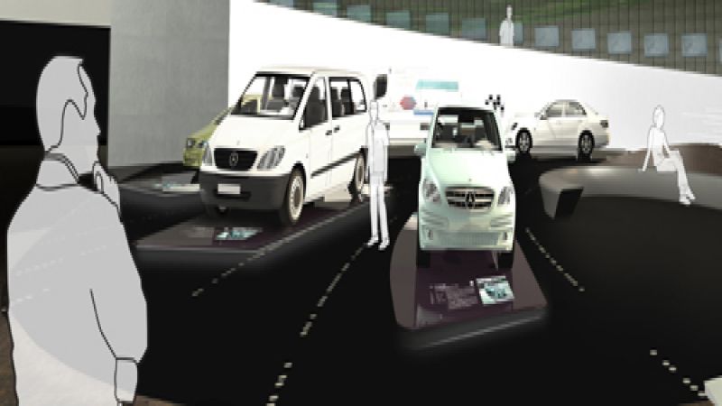 The drive technologies of the future featured at the Mercedes-Benz museum include some old and current automobiles that point the way to future drive technologies.