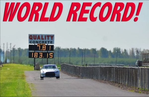 Just to make sure of it, since it can take several days for the record to post, the ETS English Racing driver made a backup run of 7.852 seconds with the same speed. So it wasn't a fluke. The modifications to this car are fairly extensive, including turbo kits, a titanium exhaust system, stroker and ETS mods, an in-house transmission build, and more. The complete list is on the YouTube description for the video above.