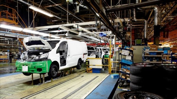 The e-NV200 shares the drivetrain of the Nissan LEAF electric car. Production on the van began Monday and the first e-NV200 rolled off the line that day. The van will be exported to twenty international markets, including Japan, the U.S., and much of Europe, expanding as demand allows. This continues Nissan's sustained EV expansion globally as part of their overall corporate growth plan.