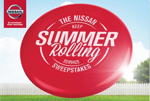 The Keep Summer Rolling Service Sweepstakes is open to Nisan owners or lessees at more than 1,000 participating dealerships in the United States. The campaign features on-the-go prize opportunities via Facebook and Pinterest as well as in-dealer opportunities for fun and winning. The sweepstakes is in collaboration with Nissan partner The Marketing Store.